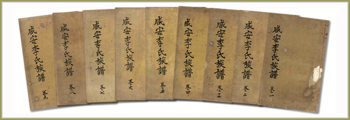 과거에 발간된 함안이씨의 구족보입니다. 기존 서책으로 된 족보를 스캔 후 보기쉽게 전자책(e-book)으로 제작하였으니 종인분들의 많은 관심과 열람바랍니다. 아래 족보를 클릭하면 자세히 볼 수 있습니다. - 임술보(1802년) - 천(天)권 지(地)권 - 갑인보(1854년) - - 유적신편 - 춘(春)권 하(夏)권 추(秋)권 동(冬)권 건(乾)권 곤(坤)권 - 병신보(1896) - 1권 2권 3권 4권 5권 6권 7권 8권 유적휘편上 유적휘편下 - 임술보(1922) - 1권 2권 3권 4권 5권 6권 7권 8권 9권